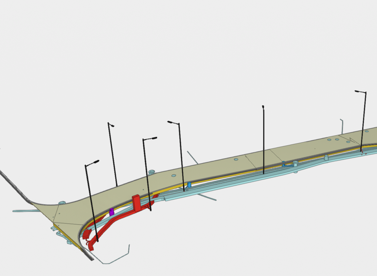 Das Modell umfasst alle bestehenden und neuen Werkleitungen sowie die dazugehörigen Werkleitungsgräben. Darüber hinaus wird der neue Strassenkörper und die Umgebung im Modell dargestellt. Die einzelnen Bauteile werden anschliessend gemäß den Vorgaben der Bauherrschaft phasengerecht attributiert. Die Projektkommunikation für die Modellierung erfolgt über eine Common Data Environment (CDE).