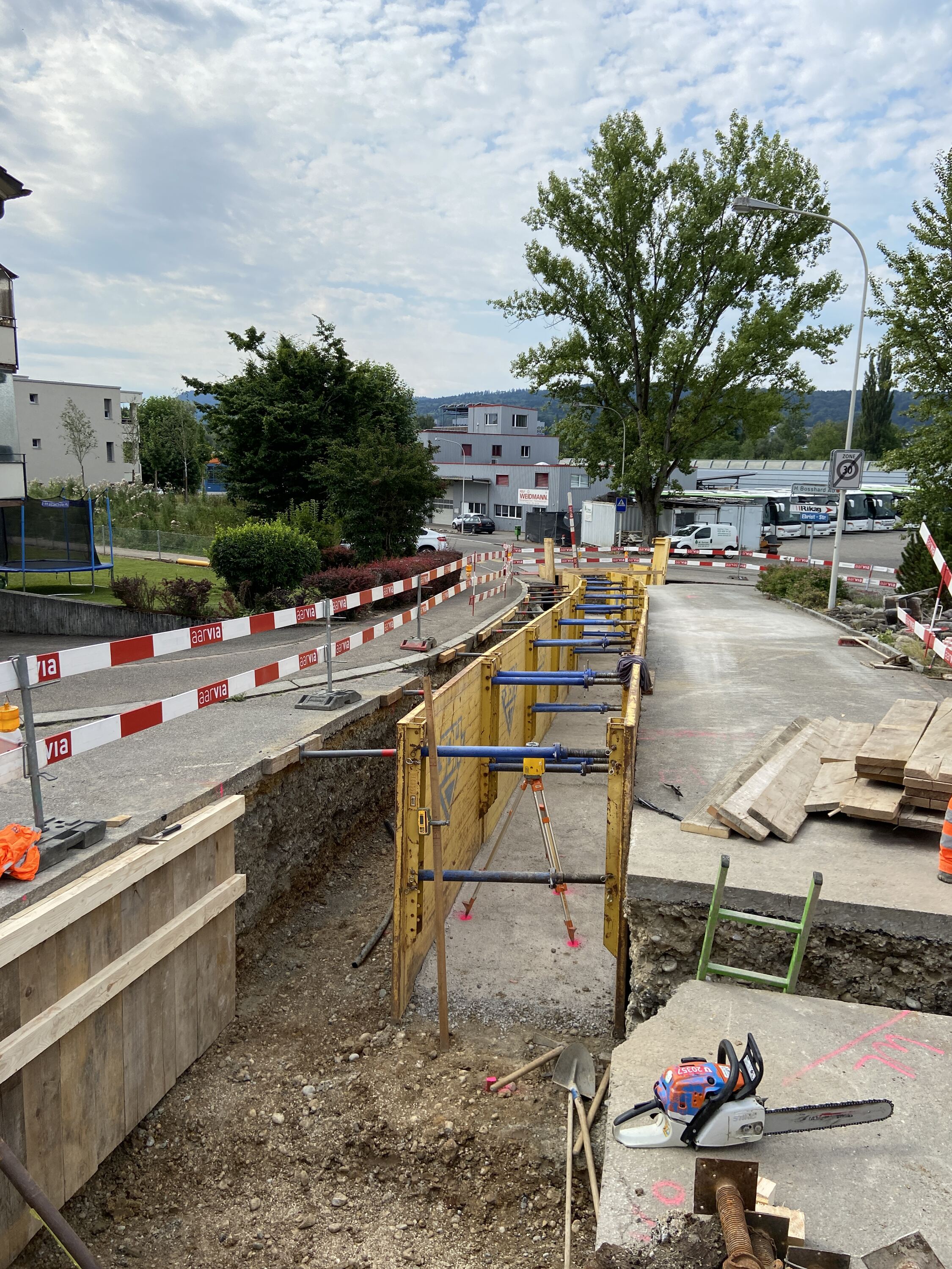 Als erstes wurden für die verschiedenen Teilprojekte das Vor- und Bauprojekt ausgear-beitet. Anschliessend wurden die Verkehrsphasen in Zusammenarbeit mit den lokalen Behörden geplant und ein Bauprogramm zusammengestellt. Die Baumeisterarbeiten wurden im Einladungsverfahren ausgeschrieben.