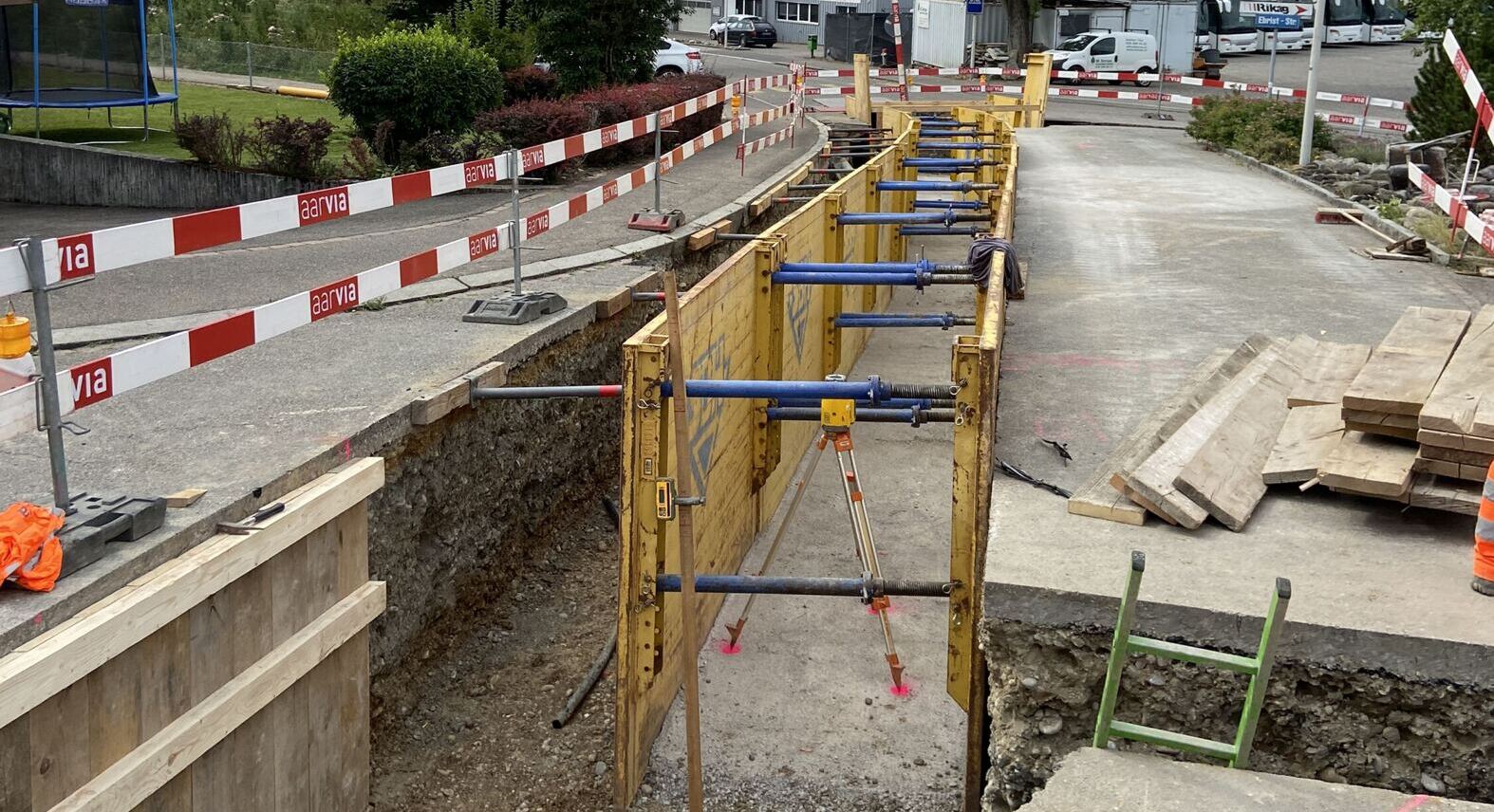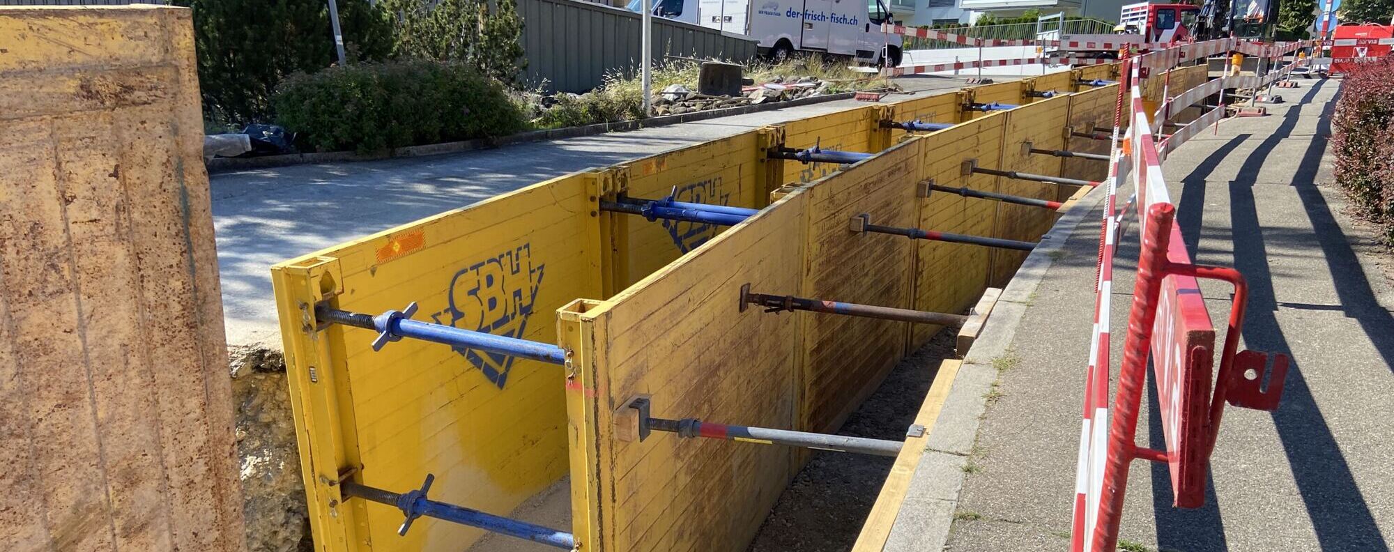 Neben den umfangreichen Bauarbeiten im offenen Graben, wurde für die Unterquerung eines eingedolten Baches ein Microtunneling NW 1’000 mm, auf einer Länge von rund 40 m, geplant und umgesetzt.