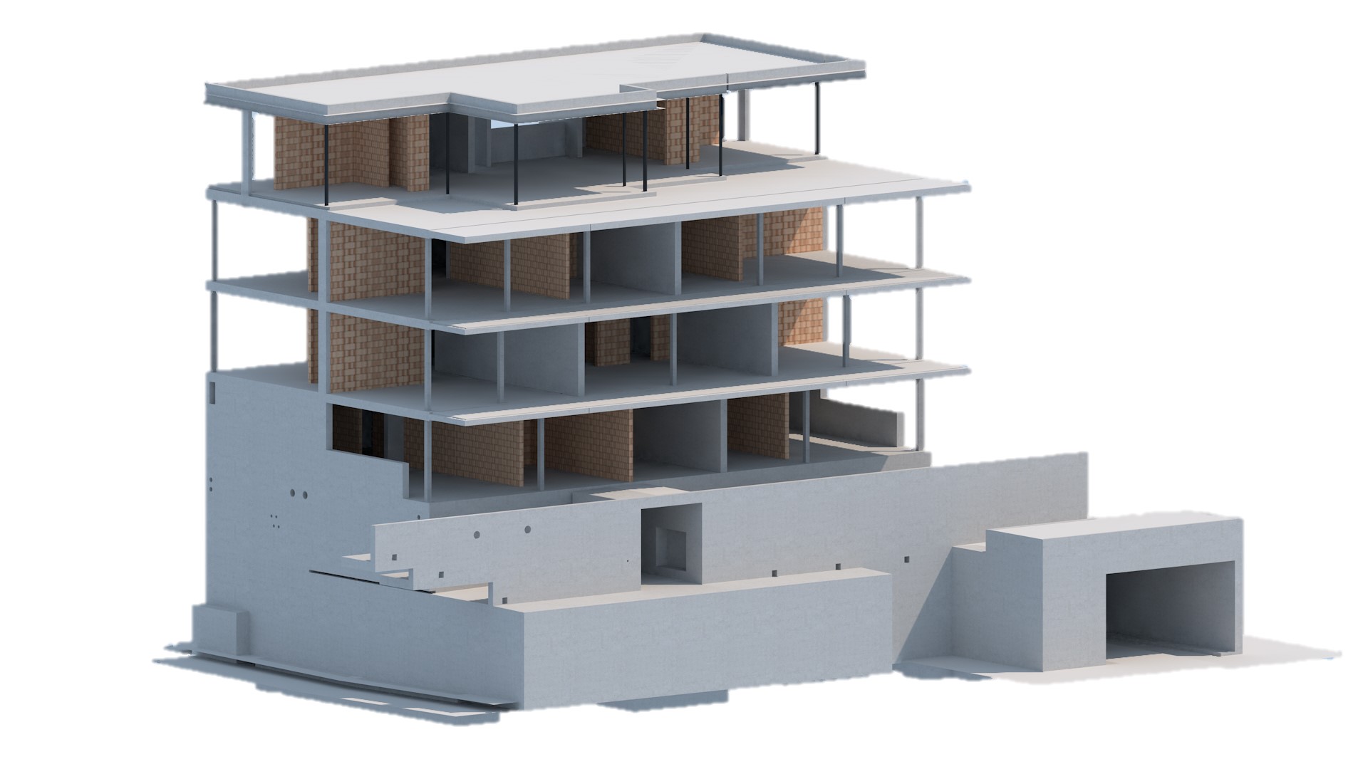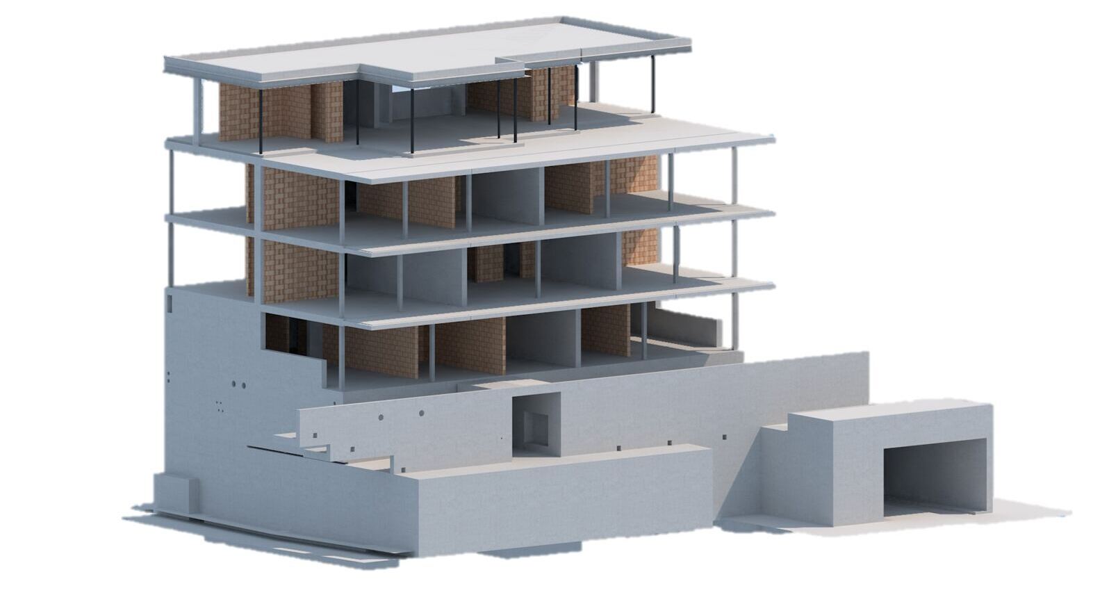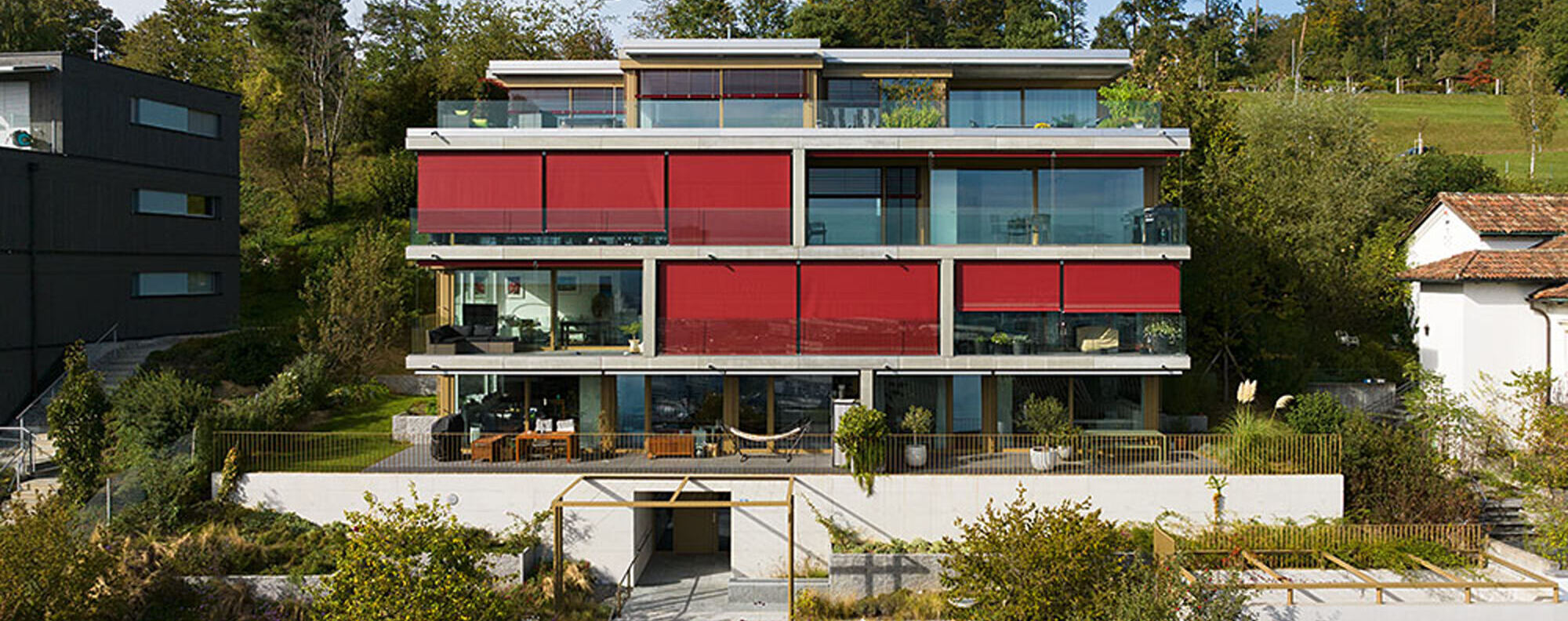 Mehrfamilienhaus mit Einstellhalle an Hanglage und Treppenhaus in Sichtbeton