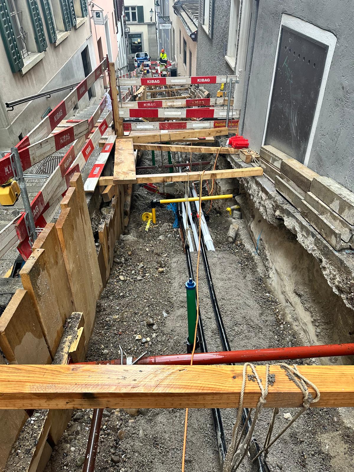 Im gesamten Nieder- und Oberdorf werden Wasser- und Quellwasserleitungen, Gasleitungen und EW-Leitungen saniert. Die Oberfläche wird dabei von zwei unterschiedlichen Bauunternehmungen erstellt. Die enge Zusammenarbeit mit den Gebietsverantwortlichen, die Koordination für die Sicherstellung eines möglichst reibungslosen Bauablaufs, die Kommunikation mit den Anrainern sowie die speziellen Gegebenheiten in den teils sehr engen Gassen in der Altstadt (z.B. denkmalgeschützte Fassaden, anspruchsvolle Oberflächenkotierungen) gehören zu den speziellen Aufgaben in diesem Projekt.